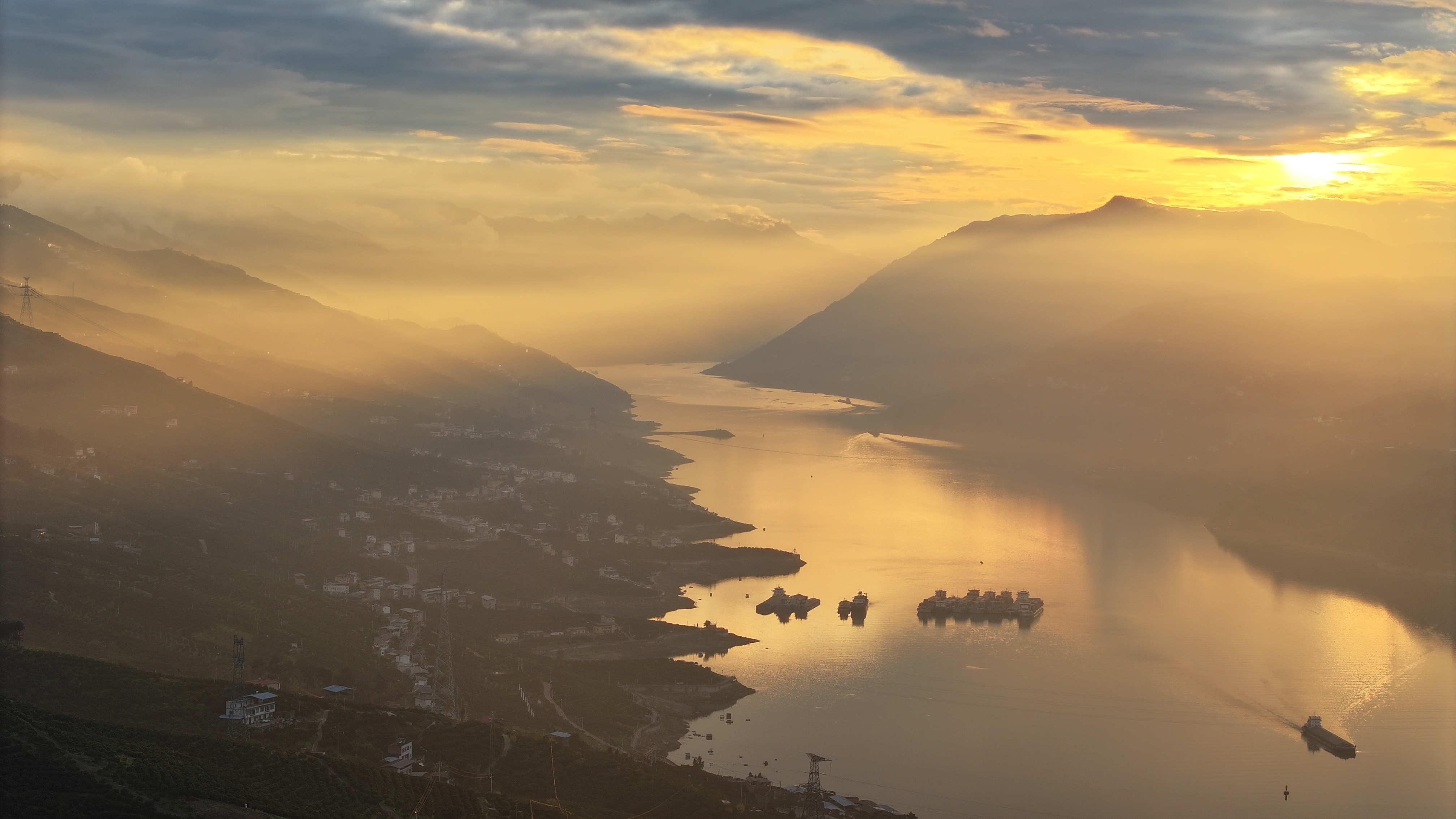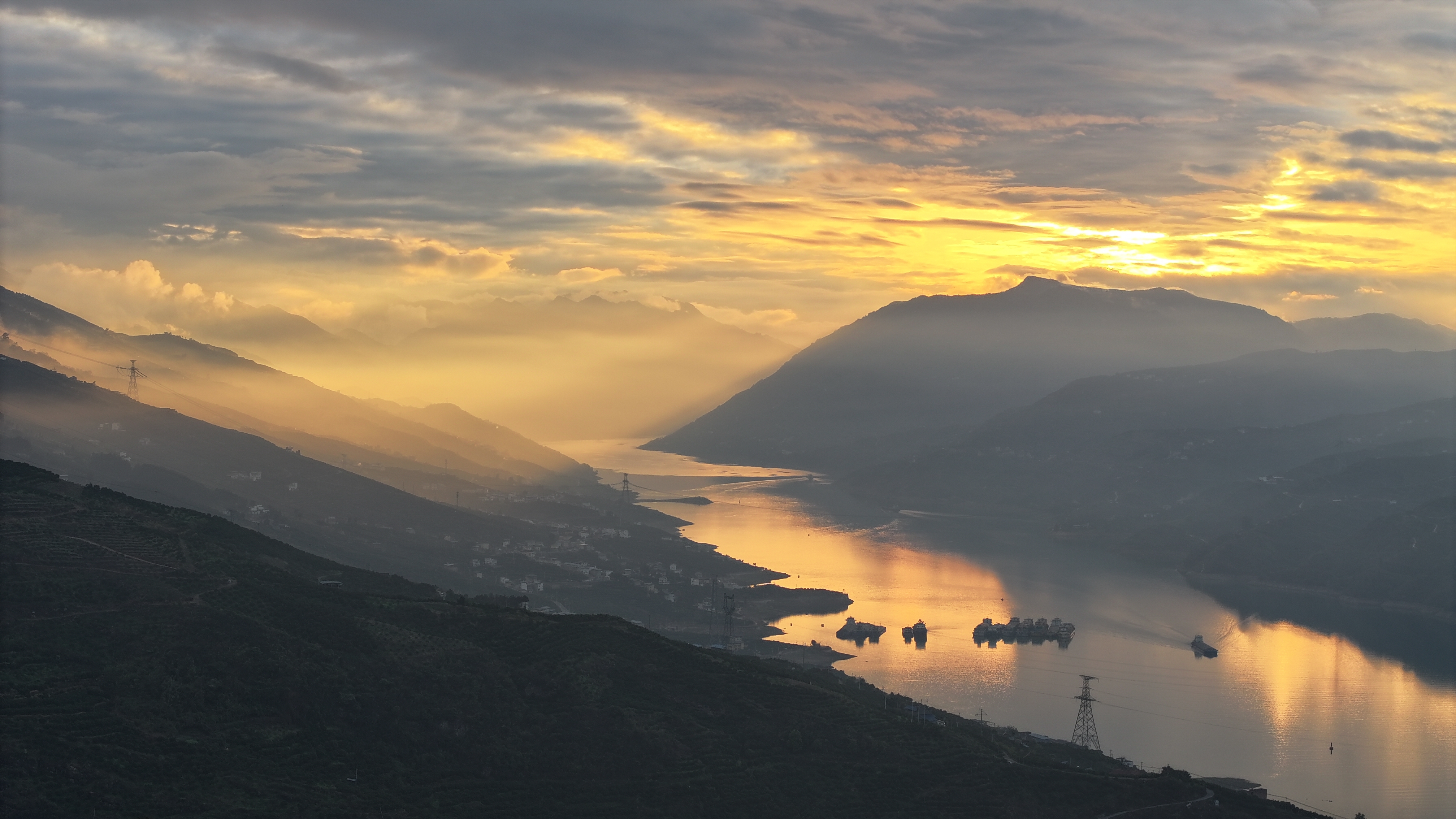 傍晚手艺,落日余光下的长江重庆奉节段瑰丽如画,别有一番风范(3月24日摄,无东谈主机像片)。新华社记者 王全超 摄