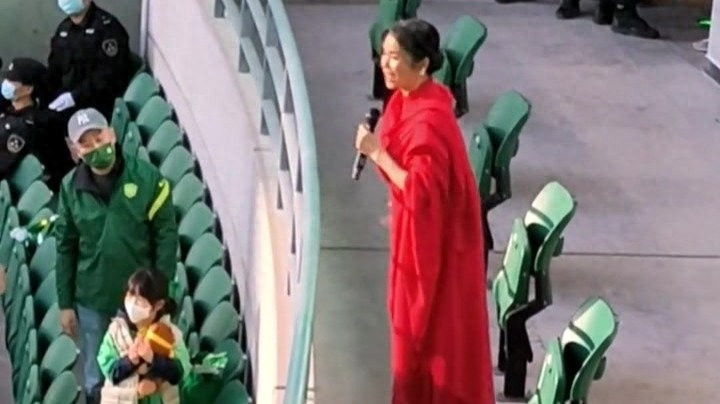 莫得任何鞋履的修饰,双脚赤裸着踩在大地上,那一刻,62岁的韦唯再次唱响了三十多年前让电台廓清瘫痪的那首《亚洲威风》。