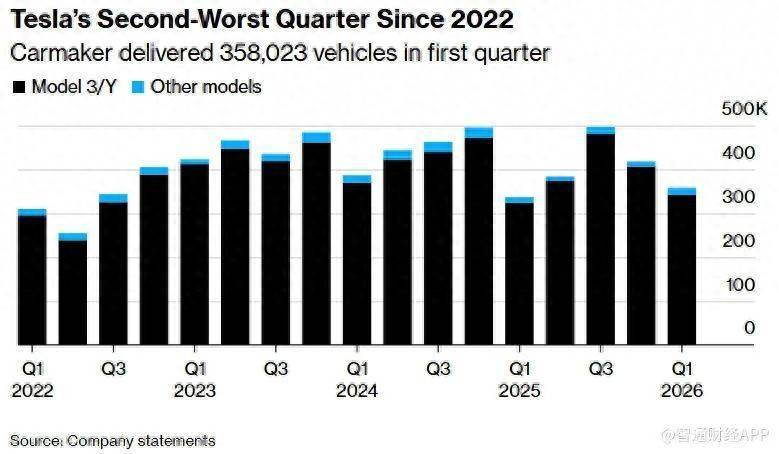 智通财经APP获悉,公司周四公布数据线路,2026年第一季度专家录用量为35.8万辆,低于市集预期的37.2万辆,这亦然特斯拉祛除第二个季度未达华尔街预期。尽管同比仍增长6.3%,若剔除旧年因Model Y停产调遣带来的低基数影响,本季度录用量为2022年中以来最低水平。