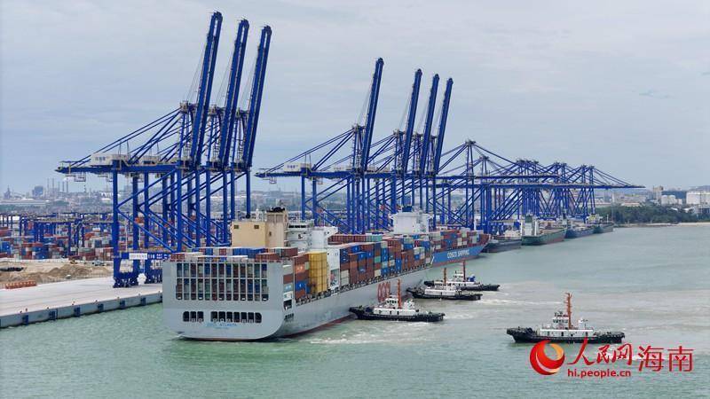 洋浦国际集装箱船埠,集装箱货轮正在进港。东说念主民网记者符武平摄